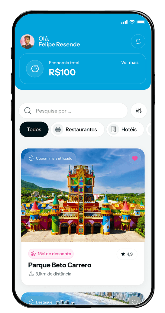 Para resgatar seus benefícios e começar a economizar em experiências e atrações, baixe o nosso aplicativo e faça login para navegar e resgatar cupons, é rápido e fácil.